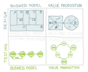 C’est aussi peut-être la raison pour laquelle Alexander Osterwaler, grand « gourou » de Business Model Generation et évangéliste du Business Model Canvas, travaille de plus en plus à interconnecter son travail avec ceux de Steve Blank sur le Customer Development Process et Eric Ries sur la Lean Start-Up. Un récent article sur son Blog en témoigne. Sur la base du Business model Canvas, les auteurs en viennent à développer un Value Proposition Canvas qui se veut révéler accompagner par le visual thinking les itérations pour mettre à jour la définition d’une proposition de valeur.